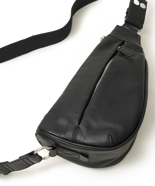 アシメトリーなフォルムが特徴なデザインのボディバッグ。