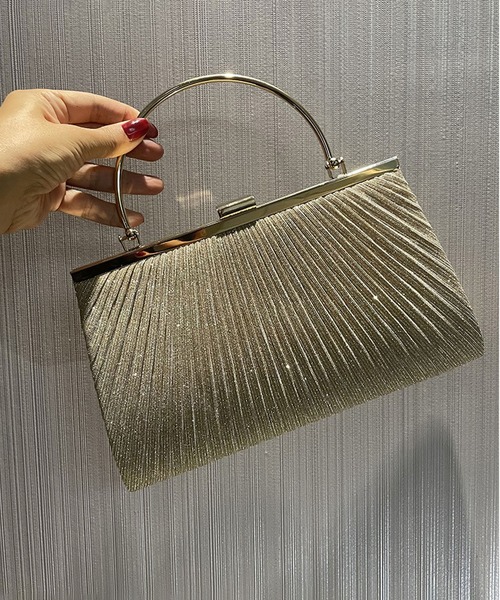 洗練されたデザインとゴールドのハンドルが印象的なパーティーバッグ。