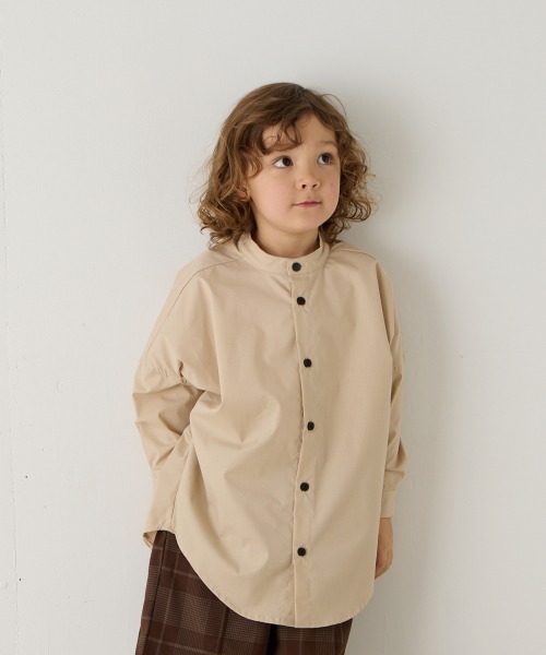 シンプルなシャツだからこそ細部までこだわった、大人顔負けのバンドカラーシャツです。