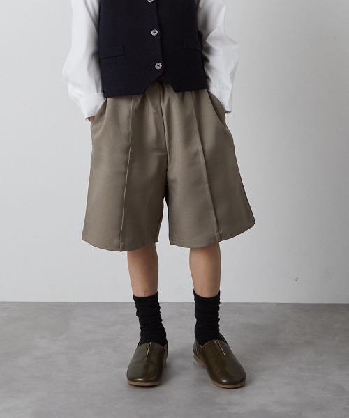 縦に入ったセンターシームがきちんと感のある印象へ導くハーフパンツ。