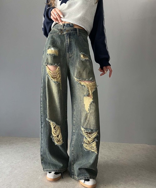 トレンド感満載のクラッシュ加工にオーバーダイ加工を施した優秀デニムです。