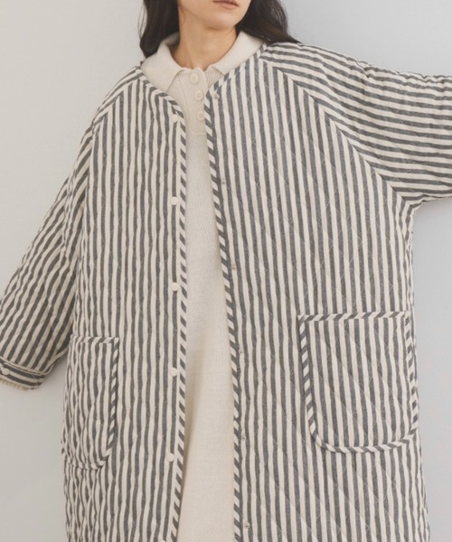 Libra Cue冬の大定番、オーバーサイズでたっぷりニットも楽に着られるキルティング素材コート。