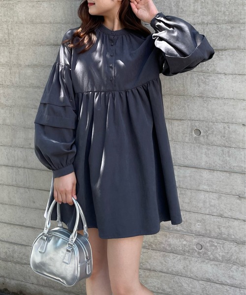 フロントのクルミボタンやボリューム感のある袖が可愛いデザインのブラウスです。