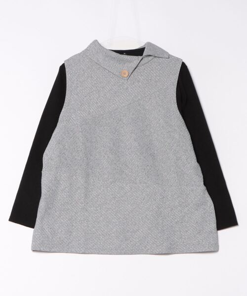 衿デザインと杢調素材が、シンプルなアンサンブルに
