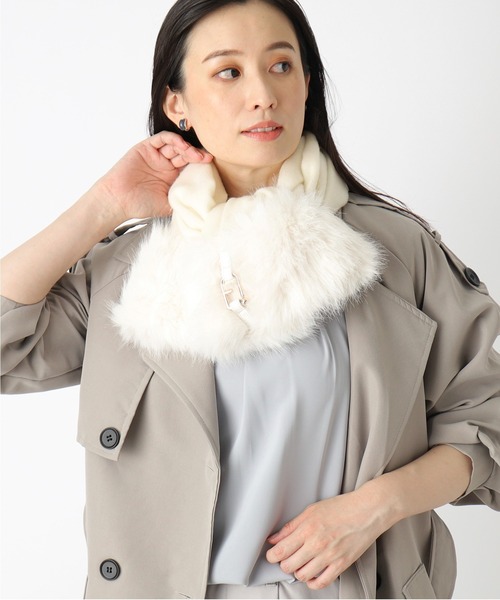 【WEB限定】【フェイクファーがトリミングされた、ウール100%の上品なマフラー】