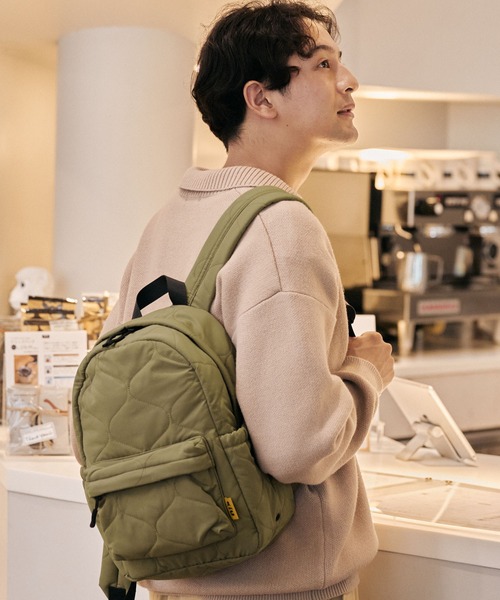 【キルティング生地のベーシックなデイバックパック】内側には傘やペットボトルを収納できるサイドポケットや、ちょっとしたものを収納できる ポケットがあり、