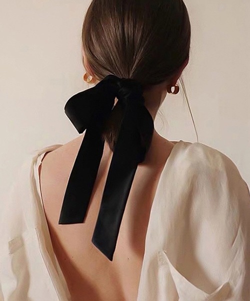 上品な光沢感のあるベロアリボンシュシュ。