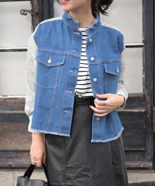 デニム/ツイード/シャツ/アウター/異素材/ジャケット/ハイネック