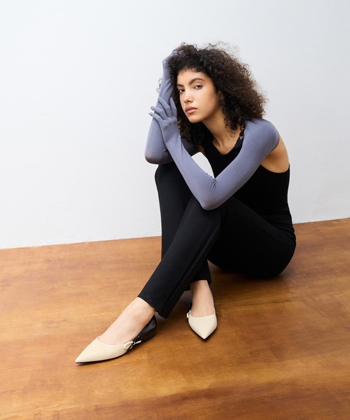 つま先はスマートなポインテッドトゥ、シルエットはすっきり細幅にして、フラットでも美脚を叶えるシルエットを表現しました。