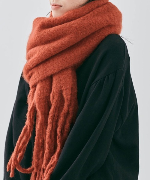 ・顔がうずくまるようなボリューム感が”可愛い”フリンジマフラー。