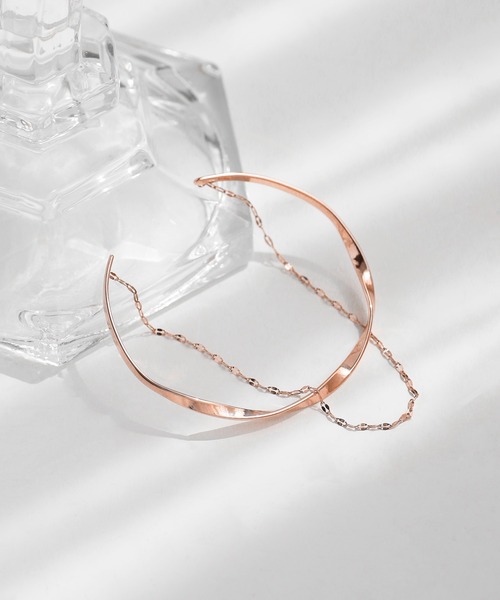 チェーンの繊細な煌めきが、コーデに上品な雰囲気をプラスするバングル。