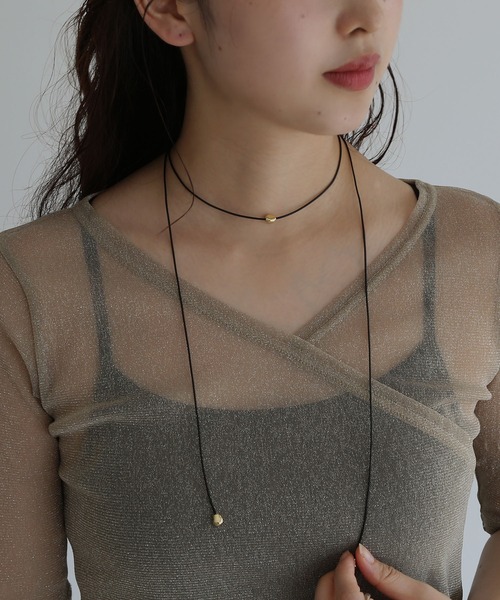 小さなメタルトップパーツのコードチョーカーネックレス。