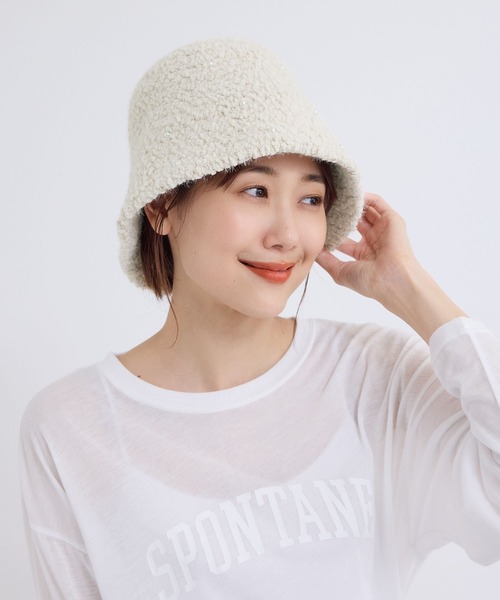 ・モコモコとした素材感で暖かみのあるベルハット。