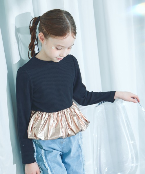 リブ素材にメタリック素材がドッキングされたバルーンブラウスです。