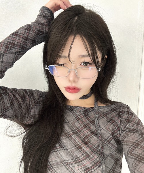 韓国ストリートコーデに相性抜群の細フレーム伊達メガネ。