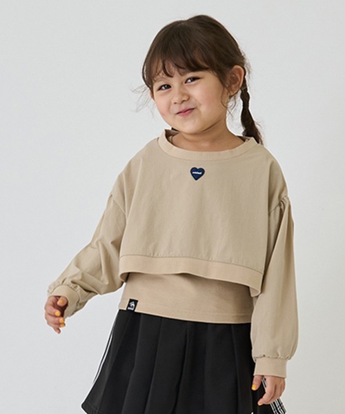 前面に配置されたハートのワッペンが可愛らしさをプラス。