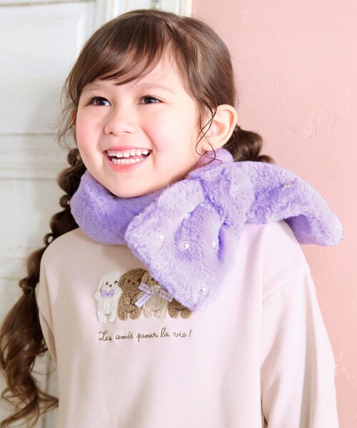 キッズ/マフラー/防寒グッズ/リボン/パール/通園/通学/ギフト/かわいい/人気/デイリー/女の子/ガール/お出かけ