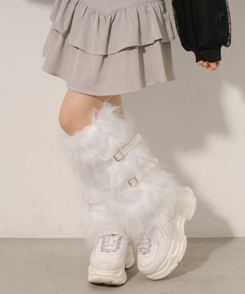フェイクファーがインパクトあり今っぽいスタイリングに早変わりするファーレッグウオーマー。