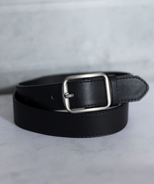 大人気、フレームバックル太め幅レザーライクベルト。