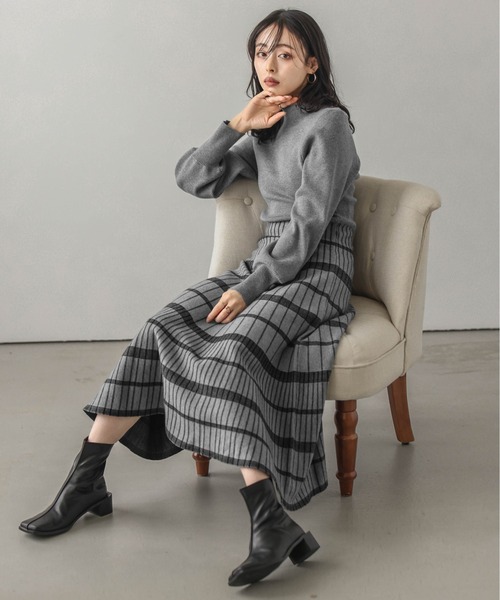 スカート:もっちりとした肉厚感があり、柔らかなジャガーニット