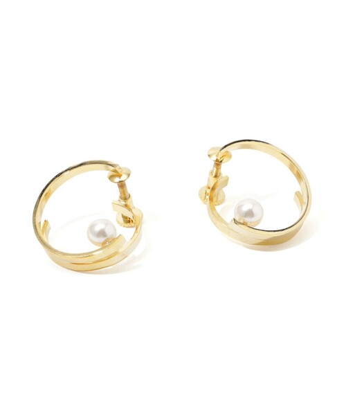 フープにパールが浮いて見える立体的なデザインで、表情豊かなイヤリング。