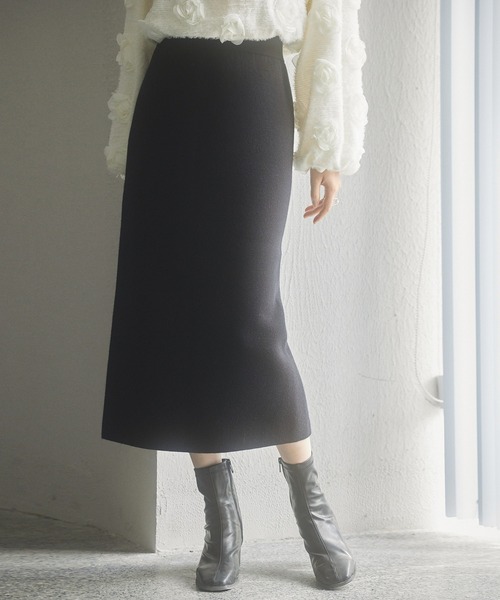防寒対策を叶える厚手仕様ながらも大人見えするミモレ丈のタイトシルエットです。縦のラインを強調した美スタイルをキープ。