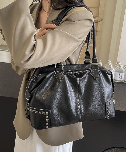 シンプルながらもスタッズが存在感を放つ!ミニボストンバッグ