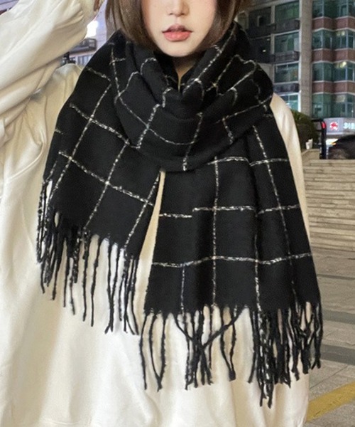 クラシックなデザインでどんなスタイルにも合わせやすい、チェック柄マフラー。