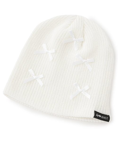ちりばめられた小さなリボンが可愛らしいニットキャップです。