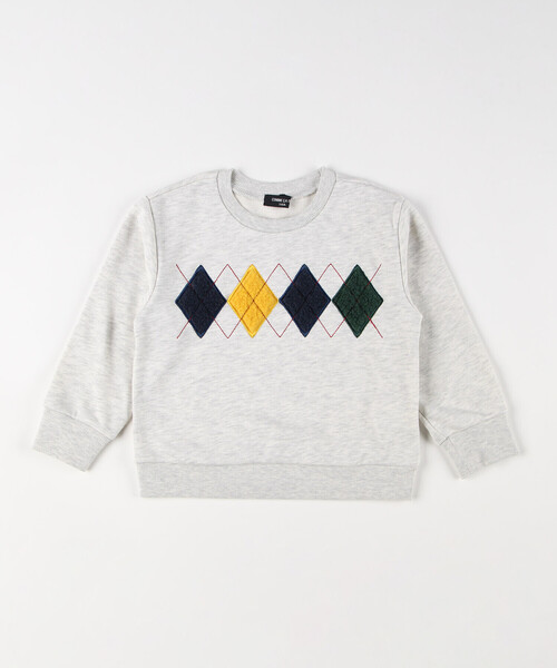 アーガイル柄のアップリケ刺繍がお洒落な長袖トレーナーです。