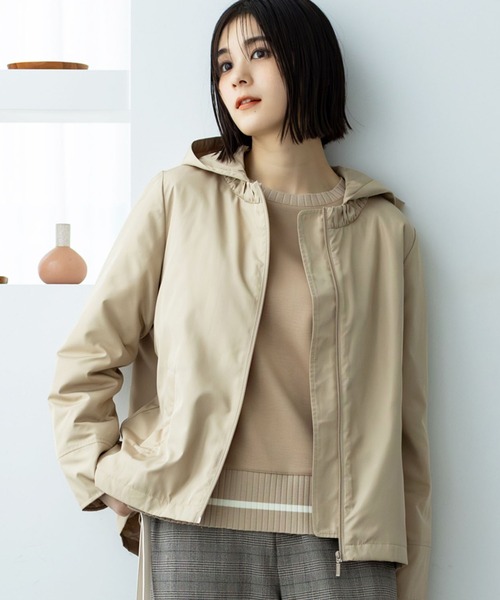 ・フードを外したギャザーネックは上品で大人可愛い印象になるので、ワンピースやジャンパースカート、きれいめなフレアスカートやテーパードパンツともよく合います。