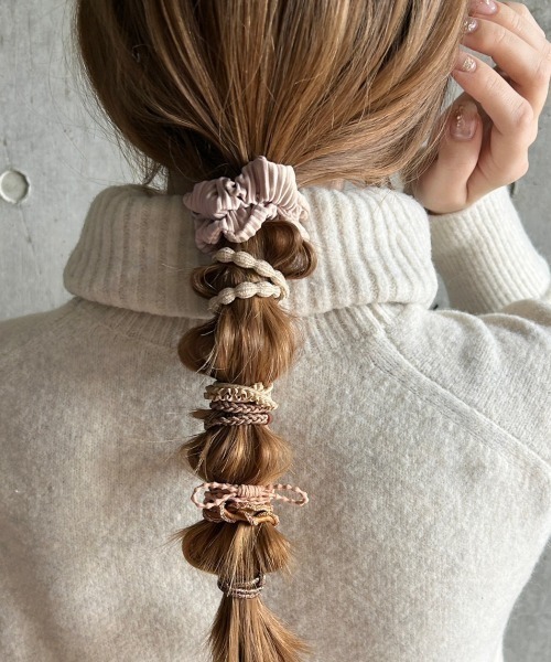 まとめてつけても、ローポニーテールやブレスレット感覚でつけてもおすすめ◎デイリーに使いまわしが効くのが嬉しいポイントです。