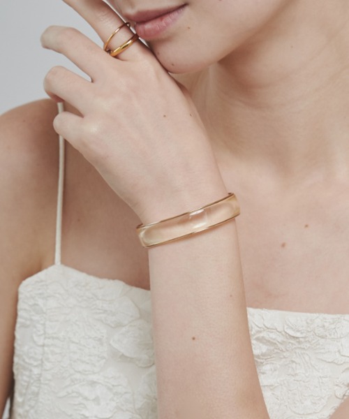 クリアカラーの透明感が上品な印象のバングル。