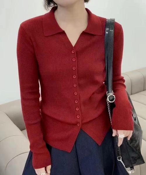 ・シンプルデザインながらもトレンド感のあるリブニットカーディガン。