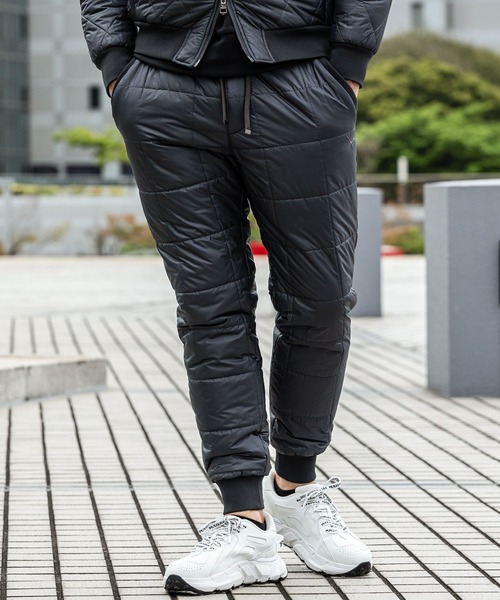 格子状のデザインが印象的なキルティングジョガーパンツ。