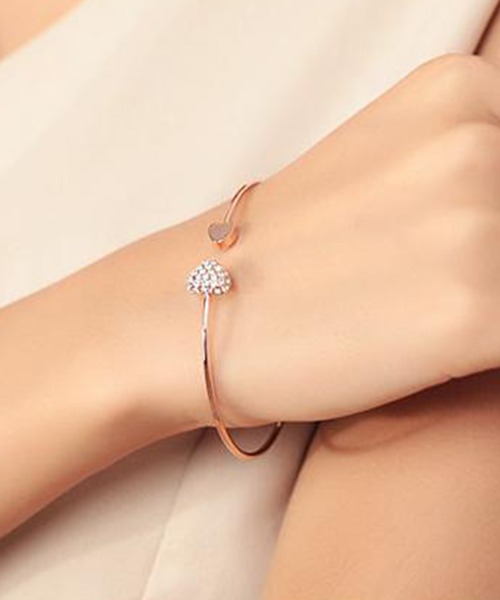ハート カフ バングル ブレスレット シルバー ゴールド ピンクゴールド ラインストーン シンプル 韓国 韓国ファッション