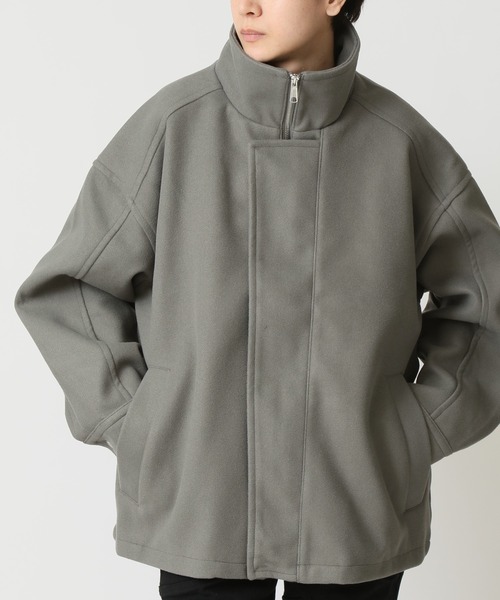 見るからに暖かさを感じるウーリーな素材感のショートコート。