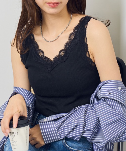 レースの肩紐が女性らしさを引き上げてくれるカップインキャミソール。