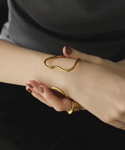 ランダムな大きさと曲線が、きらきらと光を反射させるデザイン。存在感のあるボリュームですが、様々なアイテムと合わせやすく日々のコーディネートに取り入れやすい。おしゃれに手元をまとめてくれる、洗練されたデザインです。