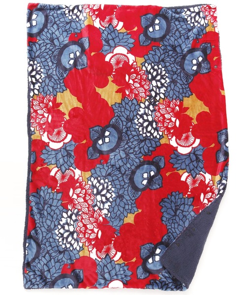 日本の花や浮世絵などのモチーフをデザインしたボア素材のブランケット。