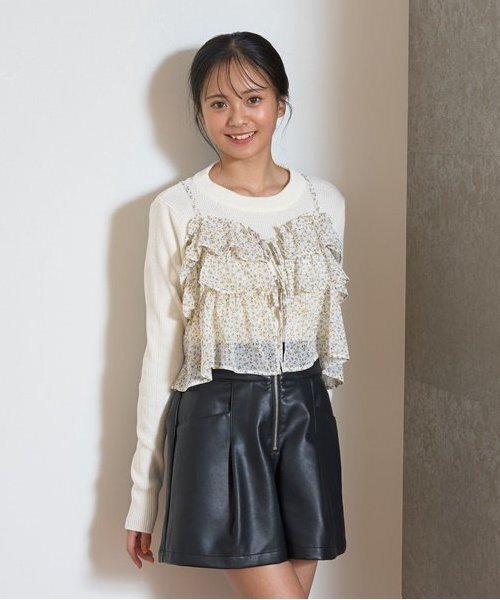 フリルデザインが可愛らしいキャミビスチェとニットのセットです。