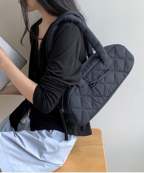 トレンドのリボンがワンポイントのキルティングハンドバッグ♪