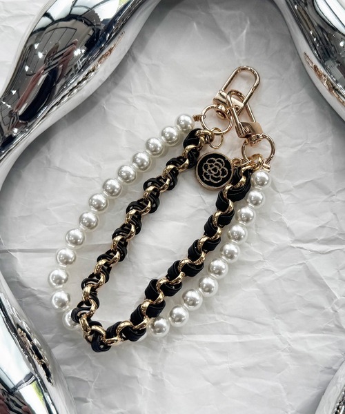 高級感あふれる【パール×チェーン】デザインのスマホストラップ。