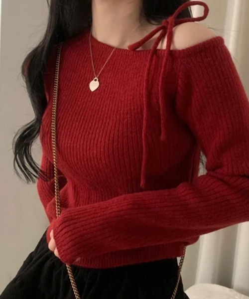 フレアスカートなどのボリュームのあるボトムに好相性の良い秋服・冬服ニット。