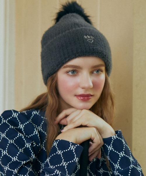 【ハートの刺繍がポイントの遊び心のあるニット帽】