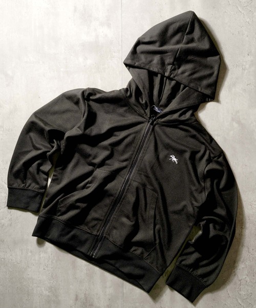 ポロチャンプスの刺繍ロゴがワンポイントで入ったフルZIPパーカー。