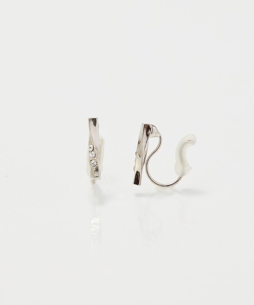 【ツイストのバーモチーフにビジューを連ねたライトフィットイヤリング】縦長のシルエットが、ハンサムで都会的な印象のデザインです。