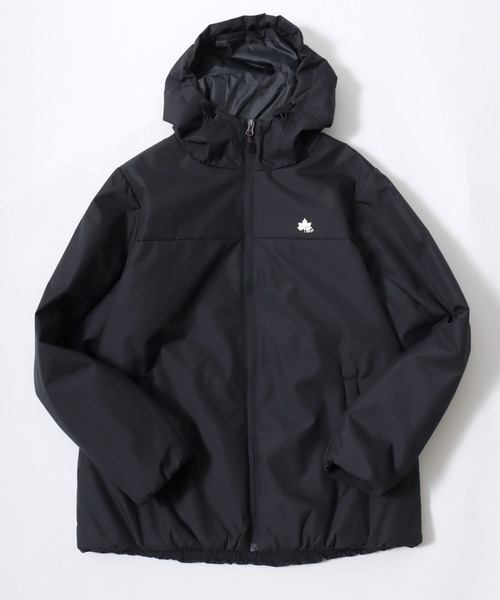 アウトドアブランド「LOGOS」のワンポイントロゴ、フードタイプの中綿フーディージャケットでシンプルに映えるデザインです。