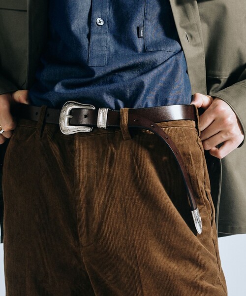 タックインスタイルにはマストなアイテムで、ベルトの先を垂らしてスタイリングのアクセントに。