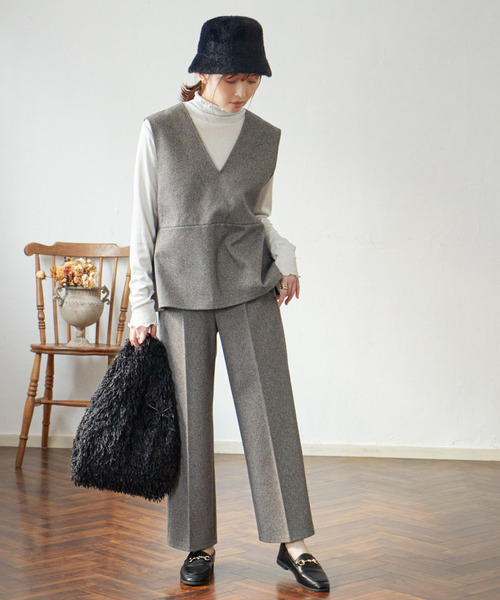 バックペプラムのベスト+同素材のパンツを合わせた上下セットアイテム!